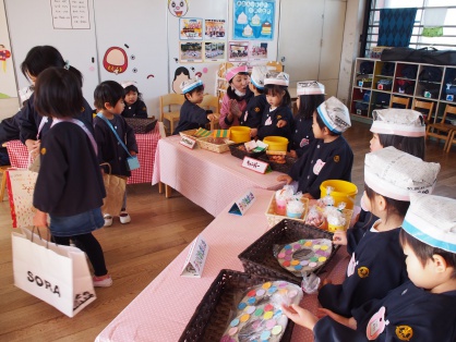 子ども達の大好きな行事の1つ。 お店屋さんごっこが今年も盛大に行われました。 お店の準備から張り切って行い、元気な「いらっしゃいませ!」がどのクラスからも聞こえてきて、保育園中が子ども達の楽しい気持ちでいっぱいになりました。 午後のおやつも自分で買いに行って、1日中お店屋さんごっこを楽しみました。 持ち帰った品物で遊んだり、クラスでお店屋さんごっこが続いたり、 まだまだ楽しいお店屋さんごっこが発展していますよ。