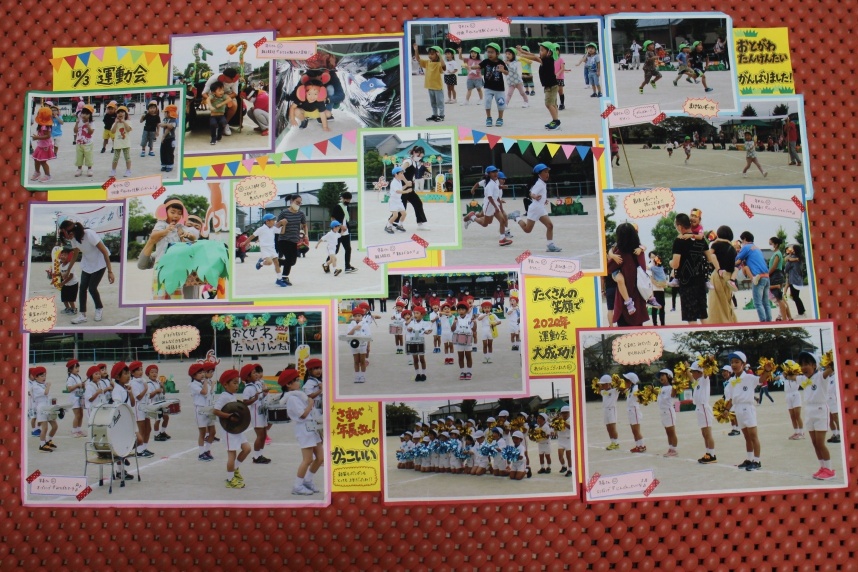 運動会を男川小学校で10/3に、運動会ごっこを園内で10/7に行いました。『念願の小学校での運動会!子どもの「バンザーイ!」の笑顔が最高でした‼』と保護者の方から感想をいただきました。コロナ禍の制限の多い学年開催のため、短い時間ではありましたが、感染対策をできる限り行い、小学校の会場をお借りして行うことができました。親子の触れ合いを楽しんだ年少さん。競争意識も出て、かけっこも見てもらった年中さん。そして、フル種目の年長さん。鼓笛パレードでは、気持ちと声もみんなで一つにして、本番の全力で頑張る姿に、瞬きするのももったいない位でした。今年度初の試みの全員の踊りは、元気いっぱい楽しく踊ることができました。親子種目でも、『こっちの足から1・2ね。』とお家の人をリードする子もいて、たくましく感じました。『初めはできなくても、何回も練習をするとできるようになるんだよね。』運動会後の年長さんの言葉。自信満々な姿に大きな成長と感動がいっぱいでした。本当なら、みんなで応援し合えるのが運動会の楽しくてワクワクするところ。園内の運動会ごっこでは、そんな瞬間も味わえました。