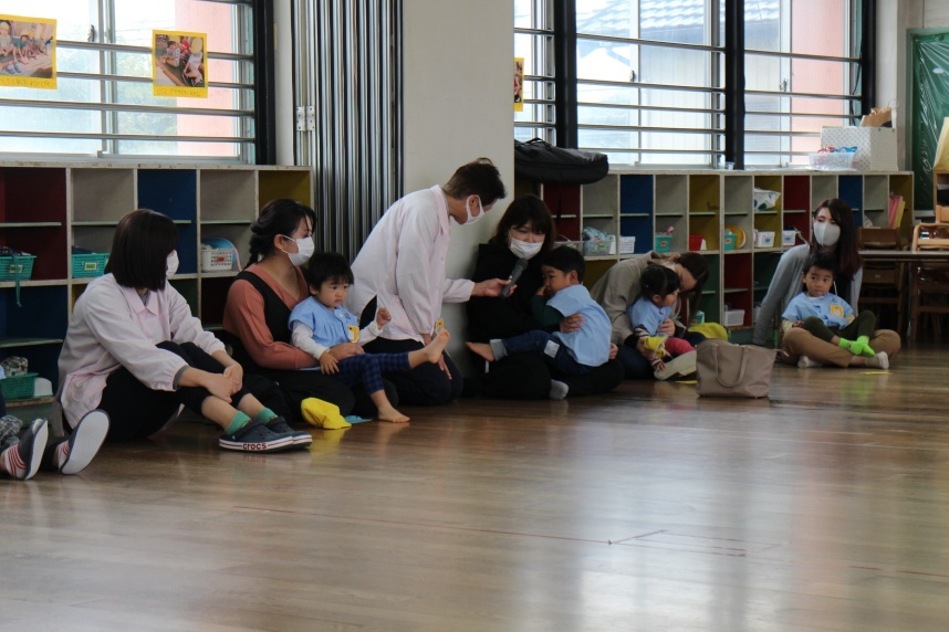 あひる1さんの保護者の方からは「楽しく参加でき、よい経験になりました!」子どもたちの好きな歌や遊びを体験してもらい、嬉しい言葉をもらいました。あひる2さんは、2階の舞台の部屋からの広いスペースを使って、自己紹介をしたり、子どもたちが運動会の体操を踊ってみたり、