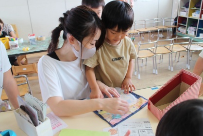 年長さんは、お家の人の手をひいてあげて、次に何をするのか教えてあげていましたよ。