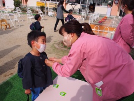 4月2日(土)、日差しが暖かく感じる青空の下で、入園進級を祝う会を行いました。