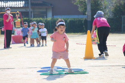 でも、大好きなお家の方の応援のおかげで、ニコニコ笑顔で頑張ることができました。かけっこでは、「よーい、ピー(笛)!」の合図とともに、元気いっぱい走り出す姿が、とってもかわいかったです。