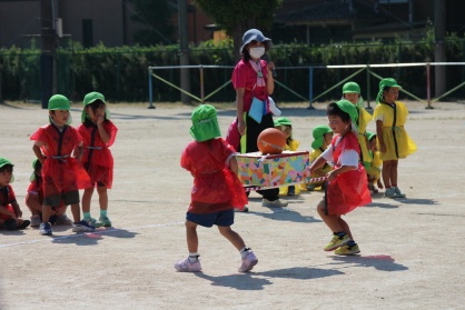 どの子もやる気満々で、120%の元気パワーで楽しむことができました。競技の中で同じチームの友達を「がんばれー!」と応援する姿には、感動しました。