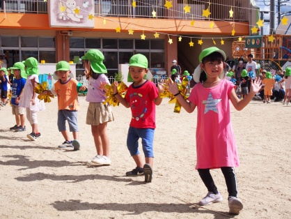 次に登場したのは、やる気満々の年中さん。踊り『 うちゅうにムチュー♪ 』では、元気よくうたを歌いながら かわいく踊ることができました。