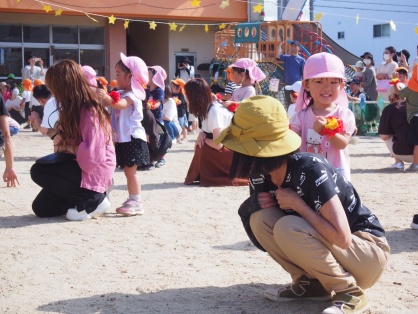 そして、保育園最後の運動会となった年長さん。たくさんの観客に少しドキドキしながらも、さすが年長さん!たくさんのかっこいい姿を見せてくれました。
