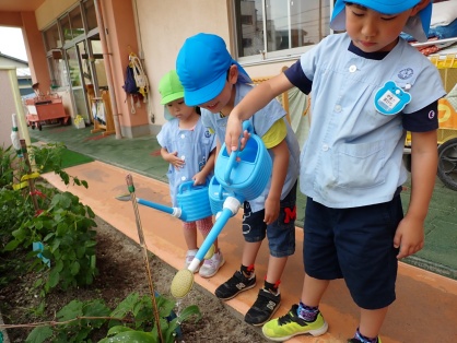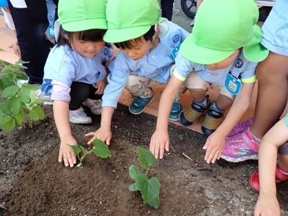 5月の初め頃、年中長さんは夏に植えて食べる夏野菜を植えました!野菜を決める時から「いつ植えるの?今日?」「早く植えたいなー」とワクワクが止まらない年中長さんたち。野菜決めでは多くの意見が出ました、「キュウリ」「にんじん」「じゃがいも」「トマト」「キャベツ」「とうもろこし」などなど…育ててみたいものがたくさん!中には「いちご」「バナナ」などのフルーツも出てきました。全部の野菜や果物を育ててみたいところですが、みんなでじっくり考えた結果、くじらさん「キュウリ」「とうもろこし」いるかさんは「トマト」「えだまめ」しゃちさんは「キュウリ」「スイカ」に決まりました!