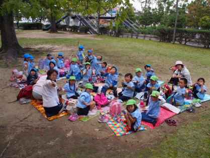 おやつも食べて、楽しい遠足が終わります。