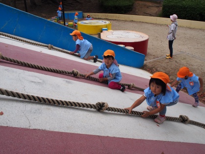 足こぎの車に乗ったり、キノコ広場でみんなで滑り台で滑ったり。