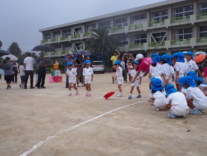 保育園の小さな園庭とは違い、小学校の大きなグランドで盛大に行うことが出来ました。