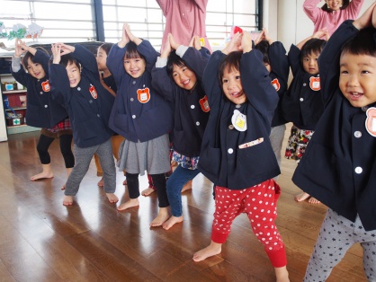 絵本「おべんとうバス」に出てくるお弁当の具になって、踊りました。