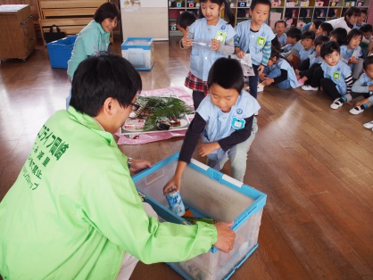 10月23日に、年長さんがエコプロジェクトに参加しました。 地球上にはたくさんの落し物があって、自然の落し物と人間の落し物に分別をしました。 子ども達は実際に分別を行いながら、人間の落し物がいっぱいだと、地球がゴミだらけになってしまう話を聞きました。 その後、他にも分別の仕方を知り、エコマンダーとお家でも分別をすることを約束しました。 エコマンダーとの約束、頑張って守っていこうね。